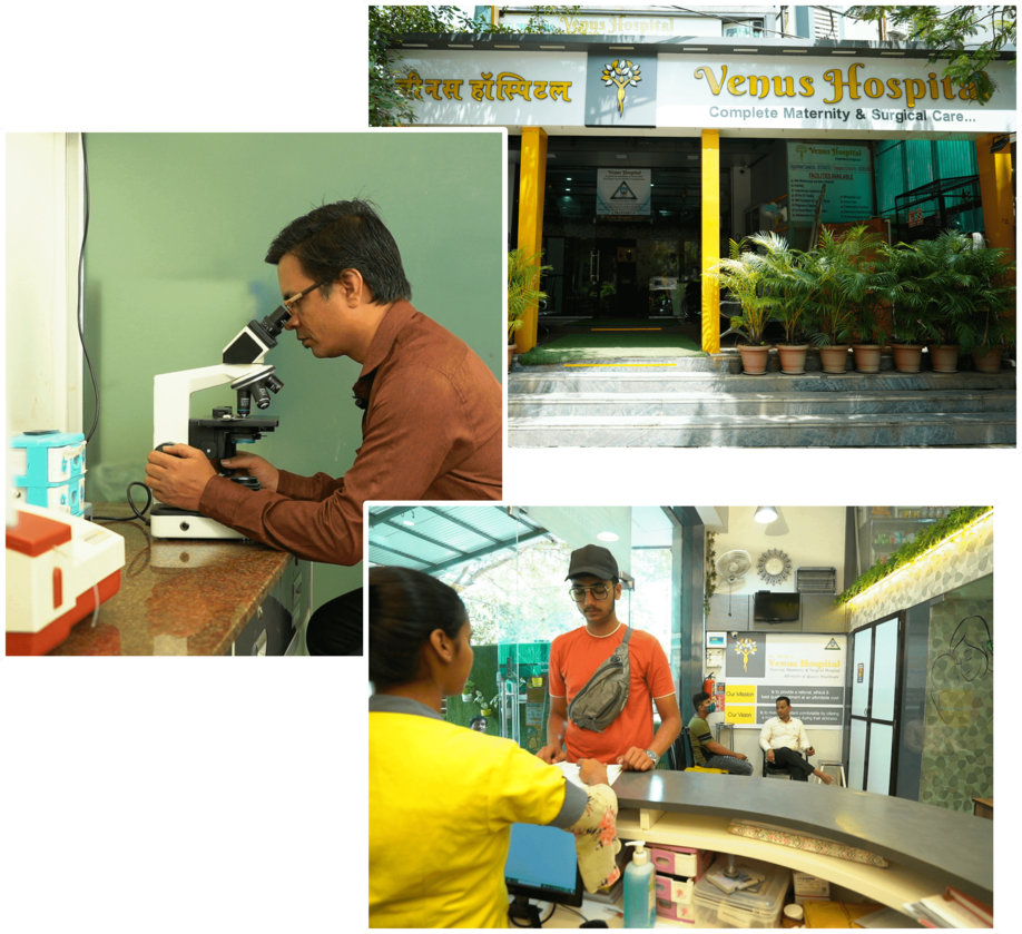 Venus Hospital has an advanced Operation Theatre with a C-Arm and a laparoscopic unit to handle all types of major, supra-major and minimally invasive keyhole surgeries and surgical emergencies; an AC Labour room for delivery; a 2-bed ICU with all life-saving equipment; a well- stocked pharmacy; X-Ray; Sonography; 2D Echo and pathology within the hospital, giving you access to complete and comprehensive health care under one roof.